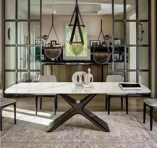 Hot selling dining table with 8 chairs 12mm ceramic marble table top modern home furniture